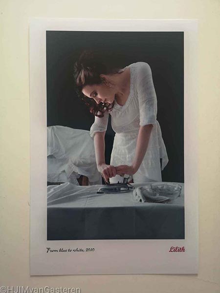Een goede vriend, inmiddels overleden, zei ooit: ‘Kijk eens naar het werk van Picasso.’ Ik sloeg een groot boek open en stuitte op zijn Strijkster uit de Blauwe Periode. Ik sloeg het boek dicht en ben meteen deze foto gaan maken met natuurlijk licht. Het strijkijzer stond op de kast. Een ‘erfstuk’. De kinderen kwamen uit school en ik riep: ‘Ben nog heel even bezig, het licht verdwijnt zo.’ Ze bleven op de drempel staan en keken toe hoe ik me in allerlei bochten wrong. In 2017 stuurde ik dit zelfportret naar de wedstrijd ‘Krabbé zoekt Picasso’ van AvroTros. Het behoorde toen al tot de collectie van Museum Van Bommel van Dam in Venlo. Uiteindelijk behoorde het tot de Jury Top Drie en won het de publieksprijs (mede dankzij velen van jullie die voor me hebben gestemd). Dankzij de prijs (een cultuurreis) heb ik in Barcelona een deel van het werk van Picasso in het echt kunnen zien.