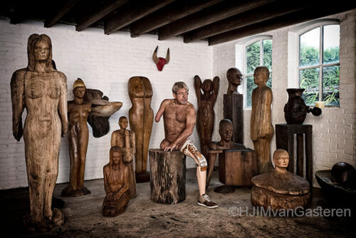 Harry Schreurs, jij ook gefeliciteerd. Zonder jou niet deze foto. Met dank aan Piet Siebers voor het gebruik van zijn prachtige houten sculpturen.