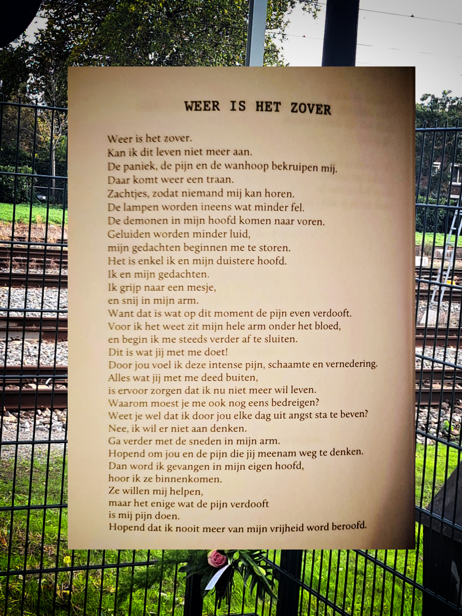 Dit zei ik tegen Krissi toen we een van de twee plegers tegenkwamen tijdens haar verhuizing uit de voorheen zo prettige studentenflat. Soms vertel ik dat we hem tegenkwamen. Men reageert algauw: ‘Ik zou dit, ik zou dat gedaan hebben.’ Veel mensen weten precies wat ze als moeder/ouder op dat moment gedaan zouden hebben. Makkelijk gezegd. Wat kun je? Wat doe je? Hoe functioneren hersenen en lichaam op zo’n moment? Wat is goed? Wat is fout? Wat is het beste voor mijn kind?