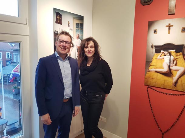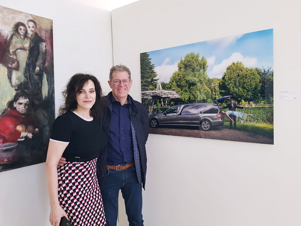 We exposeren momenteel samen bij het Museum van de Vrouw in Echt. We kenden elkaar vóór deze expositie ‘Pas de deux’ niet, maar zijn het afgelopen halfjaar enorm hecht geworden. We hebben zoveel meegemaakt. Mooie maar ook minder fraaie zaken, waar we dan – ondanks alle tegenwerking – als twee pubers samen over gniffelden. Er werd ooit smalend aan haar gevraagd of we een Siamese tweeling waren. Nou nee, kijk naar ons werk, bepaald niet, maar we zaten wel op dezelfde golflengte. Als iemand iets naars over mij zei, dan sprong ze voor mij in de bres. Omgekeerd stond ik voor haar en voor ons samen op de barricaden. Elk op haar eigen manier, net zo verschillend als ons werk maar met vergelijkbare rechtvaardigheidsgevoel, verontwaardiging en intentie.