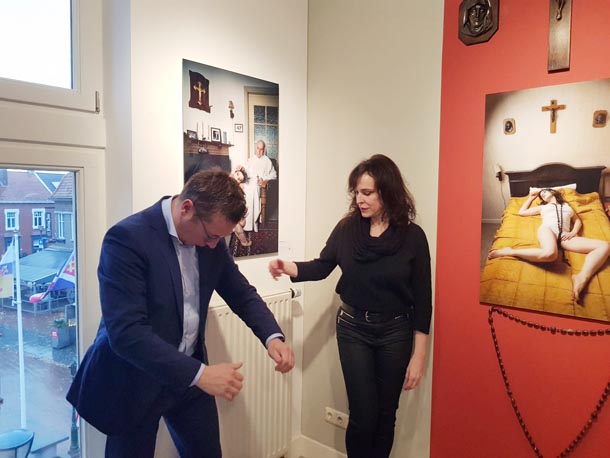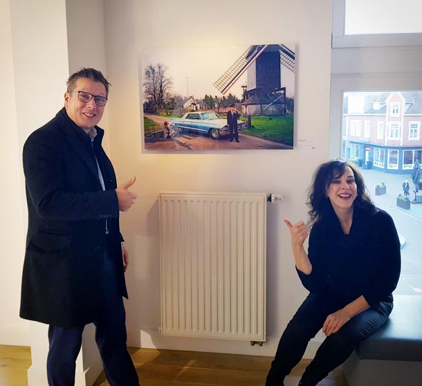 Gerrit Hillen en Peter Smets kwamen onder andere naar zichzelf kijken bij Museum van de Vrouw in Echt. Er werd gevraagd waarom ik juist deze selectie voor de expositie had gemaakt. Omdat in de serie zelfportretten ‘Bit Player’ familie, vrienden en bekenden uit Limburg voorkomen en omdat deze foto’s bijna allemaal op Limburgse locaties zijn gemaakt. Een goede match met dit unieke Limburgse museum.