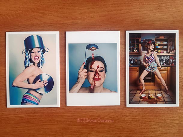 Afm. 17,5 x 12 cm, gesigneerd. Fine art prints opgeplakt op Forex (daardoor kunnen ze zó in een lijstje, ze gaan niet zakken). Ze zijn een aanwinst voor elke keuken. Het recept voor de gebruikte tomatensoep krijg je er gratis bij (werd ooit gepubliceerd in Amsterdam XXXL )