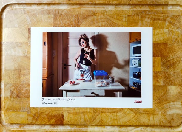 Zelfportret ‘Magdalena Carmen Frida’ 2009, buitenmaat 27×18 cm, fine art print, afgedrukt en gesigneerd (met de naam ‘Lilith’) in 2012 op Hahnemühle photo rag, het papier dat, zoals men zegt, vervaardigd is uit lompen en daardoor een geweldige stofuitdrukking heeft. Soms vinden mensen een foto mooi, omdat die op een schilderij lijkt. Doorgaans vind ik dat een non-argument, want een foto is een foto en hoeft niet op een schilderij te lijken om mooi gevonden te kunnen worden. Nu zeg ik: ‘Als je een foto wilt die op een schilderij lijkt, kopen!’ Dat ligt dus in dit geval aan het papier.